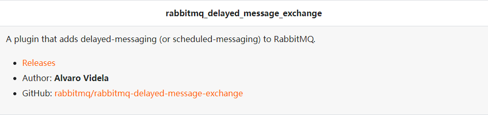 在官方插件列表https://www.rabbitmq.com/docs/community-plugins 中可以找到rabbitmq_delayed_message_exchange的 github 地址,选择与自己服务中 RabbitMQ 相近的版本。
