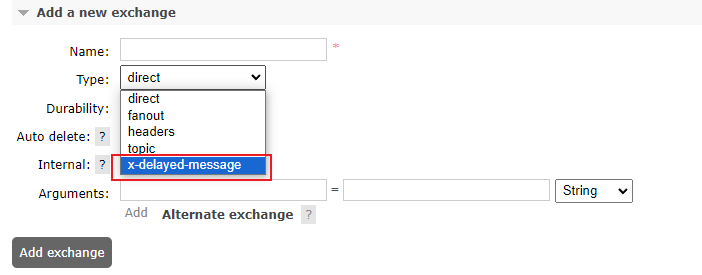 # 重启rabbitmq使其生效安装完后在 RabbitMQ 管理界面的 Exchanges 中新增时类型可以选择 x-delayed-message