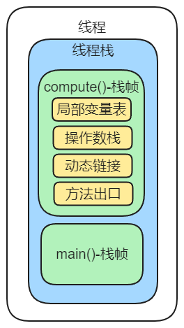 在上图中就是一个线程栈运行了main()和compute()两个方法后的状态。